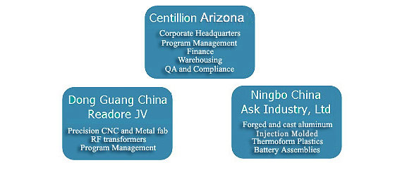 Whether you are an experienced off-shore veteran, or considering your first sourcing requirement, Centillion may have a solution for you. Our headquarters in Arizona provides a single point of contact to our Domestic Program Managers and Engineers in Dong Guan and Ningbo.